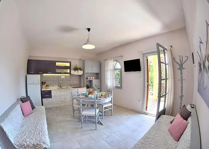 1-slaapkamer Calma Luxury Apartments #4 Sozopoli In Halkidiki, gelegen in Sozopoli, bevinden zich op 40 km afstand van de luchthaven Thessaloniki. Dit 50 m^2 appartement heeft een terras met de tuin.